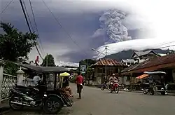 In 2018, Soputan erupted on 3 October, and again twice on 16 December. All three times the volcano spewed a massive column of ash more than 6,000 m (19,700 ft) into the sky.[7][8] The October eruption occurred about a week after a powerful earthquake and tsunami struck the island.[9]