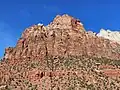 Mount Spry[2] is a small 5,720-ft elevation mountain summit made of Navajo Sandstone located in Zion National Park, in Washington County of southwest Utah, United States. Officially named in 1934, it honors William Spry (1864–1929), the third governor of Utah. The nearest higher peak is The East Temple, 0.34 miles (0.55 km) to the east.[1] Precipitation runoff from the mountain drains into tributaries of the North Fork Virgin River.