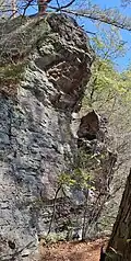 Gama-iwa ガマ岩 ("Toad Rock 蟇岩") is a sacred rock formation located just to the right of the Cave of Onisaburo Deguchi. The rock is mentioned in the Reikai Monogatari (Book 1, Chapter 14 and Book 7, Chapter 50).[12]