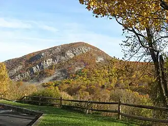 Mount Tammany is the southernmost peak of the Kittatinny Mountains, in Knowlton Township, Warren County, New Jersey, United States. It is 1,526 feet (465 m) tall, and forms the east side of the Delaware Water Gap. Across the Gap is Mount Minsi, on the Pennsylvania side of the river. The mountain is named after the Lenni Lenape chief Tamanend.[2] It lies along the Appalachian Trail in Worthington State Forest. The summit can be hiked by the Mount Tammany Trail ascending the western slopes.[3] The trailhead is accessible from Interstate 80.