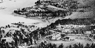 ![]() 1853 sketch of the pavilion property looking southeast to Weehawken Cove | |