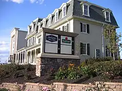 The Mountain Springs Hotel is listed on the National Register of Historic Places and is located in Ephrata, Pennsylvania, at the corner of East Main Street and Spring Garden Street. It was originally built in 1848 as a summer resort, capitalizing on its natural spring water, and hosted a variety of high-profile guests including several Presidents. The resort lost its popularity in the early 20th century and fell into disrepair, but was eventually purchased and converted into the first hospital in the Ephrata area—serving from 1937 through 1949. It remained under private ownership and became dilapidated over the following decades, culminating in its complete closure in 1988 and the auctioning of its contents in 1991. The following decade was met with a variety of redevelopment proposals, and in the years around the turn of the 21st century it was decided that the property would be redeveloped with another hotel. The majority of the Mountain Springs Hotel was demolished in 2004, retaining a portion of the Konigmacher mansion.[2] Today, a Hampton Inn hotel and Applebee's restaurant occupy the site alongside the restored building from the original Mountain Springs Hotel.