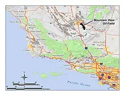 ![]() The Mountain View Oil Field in central California. Other oil fields are shown in dark gray. | |