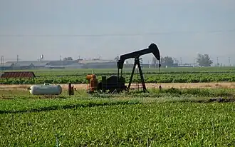 The Mountain View Oil Field is a large, mature, but still-productive oil field in Kern County, California, in the United States, in the extreme southern part of the San Joaquin Valley southeast of Bakersfield. It underlies the town of Arvin, as well as some smaller agricultural communities. The field is spread out across a large area, covering just under 8 square miles (21 km2), with wells and storage facilities widely dispersed throughout the area, scattered among working agricultural fields of broccoli and carrots as well as citrus orchards. Discovered in 1933, it has produced over 90 million barrels (14,000,000 m3) of oil in its lifetime, and although declining in production is one of the few inland California fields in which new oil is still being discovered.[1]