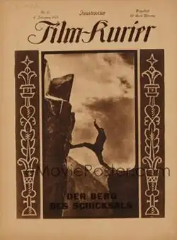 Mountain of Destiny (German: Berg des Schicksals) is a 1924 German silent drama film written and directed by Arnold Fanck and starring Hannes Schneider, Frida Richard, Erna Morena, and Luis Trenker. The film is about an alpinist who falls to his death while climbing a dangerous peak. His son later succeeds where his father had failed. The film was released in the United Kingdom with the title The Mountaineers. After seeing Mountain of Destiny, Leni Riefenstahl, then a dancer, decided she wanted to start appearing in films.[1] She got in touch with Fanck and starred in his 1926 film The Holy Mountain.