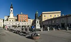 Mozartplatz, formerly known as Michaelsplatz, is a square in the historic centre (Altstadt) of Salzburg in Austria. In the centre of the square is a statue in memory of the composer Wolfgang Amadeus Mozart, who was born in the city and after whom the square is now named.[1][2]