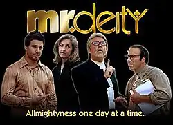Mr. Deity is a series of satirical short films that parody aspects of religion, created by Brian Keith Dalton[1] and distributed by Lazy Eye Pictures. It stars Brian Keith Dalton, Jimbo Marshall, Sean Douglas, and Amy Rohren.[2] It premiered on December 27, 2006. The show was hosted on YouTube, after a spell on Crackle and is currently available on the Mr. Deity channel on YouTube. In early 2012 Jimbo Marshall ended his participation to work in his own production company, "Your Video Solution."