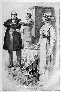 After an absence of three weeks, Raffles tells Bunny he has been taking the cure at Carlsbad as an excuse to try to steal jewelry from the wife of moneylender Dan Levy (whom Bunny calls Mr. Shylock), but returned early to watch his young cricket protégé, Teddy Garland, play at Lord's. At the Albany, however, they catch Teddy writing himself a check from Raffles's checkbook. Raffles easily forgives the distraught Teddy, who is seriously in debt to Levy, due to Levy's unfairly high interest. Raffles sends Teddy to sleep, then discusses Levy with Bunny.