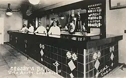 By 1983, the food quality had dropped and the restaurant closed, but the hotel continued to operate and the quality of drinks at the bar remained unaffected.[5] As of 2010, the bar was co-owned by Gabriel Ramos.[3][6] Business at Crosby's had been negatively impacted by several factors, including decreased tourism attributed to fears of violence associated with Mexico's drug cartel war, stricter U.S. passport requirements, and reports of border violence in the media.[3] Its dance hall had been closed for a year and a half as of 2010 due to a decline in patrons.[3]