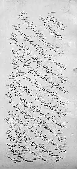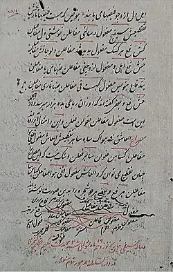 Azim was one of seven male siblings. His father, Hakim Mulla Muhammad Javad, held the position of Chief Physician at the court of Sardar Abdullah Khan Barakzai, the Afghan governor of Kashmir (r. 1795–1807). Due to Abdullah Khan's anti-Shia policies, Javad distanced himself from the governor and aligned with the royal army dispatched by Afghan king Zaman Shah Durrani under Mukhtar al-Dawla to depose Abdullah Khan.[14] It is believed that Hakim Javad died during or shortly after these tumultuous events.[10] Not much is known about Azim's teachers but the early part of his education would have been undertaken at home with family elders. Maqbool Sajid mentions that Azim studied under Mulla Muhammad Muqim, a distinguished Shia scholar from Nabdipora in Srinagar, but this is in no way certain.[1] At the age of 27, we find Azim was already associated with the court of Maharaja Ranjit Singha at Lahore.[10][1] It was at Lahore that in 1832, he completed his copy of Risala-i-Safi, a work on Persian prosody written in 896 AH/ 1464 CE by the poet Saifi Bukhari.[1] The manuscript is indicative of Azim's masterly grasp on the subject, as can be seen in the way he has expanded on the original text. In addition to Kashmiri, Persian, Arabic, Azim was also well versed in Urdu, Punjabi and Dogri. During his stay at Lahore, Azim also visited Amritsar, where he had two books on Arabic grammar and rhetoric copied: Risala-i Kafi and Risala-i Zinjani.[11] The author of Tazkira-i Khushnavisan-i Kashmir, lists Azim amongst calligraphers of nineteenth century, and writes about him: