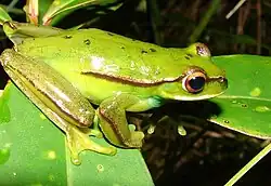 The Mundo Novo tree frog (Boana marginata) is a species of frog in the family Hylidae. It is endemic to south-eastern Brazil where it is known from the easternmost Rio Grande do Sul and adjacent southeastern Santa Catarina.[2] Its natural habitats are forested mountain slopes near streams with clear running water. The eggs are deposited on vegetation hanging into the water. It is a common species although habitat loss and water pollution are threats.[1]