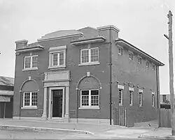 In 1929, Mascot council inaugurated a new Council Chambers building, designed in the Inter-war Georgian Revival style by R. S. Hamilton and built by J. Figures of Randwick, located on Coward Street next to the 1890 Town Hall and 1911 Coronation Hall.[26] This building remained the council seat until amalgamation in 1948 and was demolished in the 1970s to be replaced by the Botany Administration Centre.