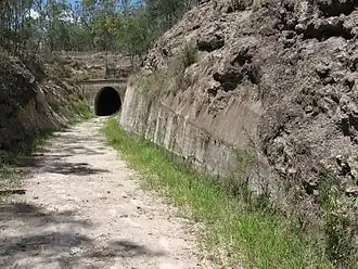 The Muntapa Tunnel is a former railway tunnel set in isolated bushland about 40 kilometres (25 mi) north of Oakey. The tunnel is located in a deep cutting along which the former railway line from Oakey to Cooyar ran.[1]