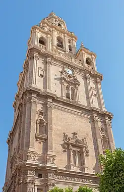 The Cathedral Church of Saint Mary in Murcia (Spanish: Iglesia Catedral de Santa María en Murcia), commonly called the Cathedral of Murcia, is a Catholic church in the city of Murcia, Spain. It is the cathedral of the Roman Catholic Diocese of Cartagena.