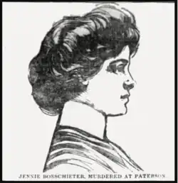 The murder of Jennie Bosschieter occurred on October 19, 1900 in Paterson, New Jersey. Bosschieter was a 17-year-old girl who was raped prior to her killing.[1] She was an early victim of the date rape drug chloral hydrate which caused her death. Her death received national news coverage and was described as "one of the most revolting [crimes] ever committed in New Jersey."