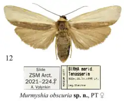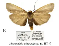 Murmyshia obscuria is a species of moth in the family Erebidae. As of June 2024, it has only been found in the northern part of the Malay Peninsula, or more specifically the Taninthayeryi Region of Myanmar.[1]