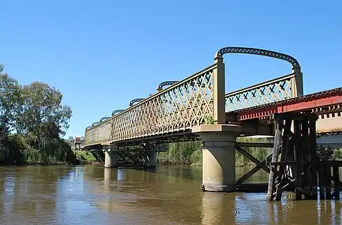 The wrought iron lattice railway bridge at Albury is an imposing structure.[1]