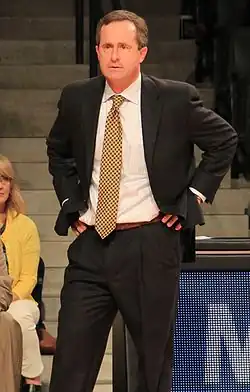 In April 2018, Bartow was hired by UCLA head coach Steve Alford as an assistant coach to replace the fired David Grace.[5][6] On December 31, 2018, Bartow was named the interim head coach after Alford was fired in the middle of the 2018–19 season.[7] The Bruins had begun the season 4–0 and ranked No. 17 in the AP Poll,[8] but they lost six of the next nine and finished with a 7–6 record in nonconference play, closing it out with four straight losses.[8][9] Under Bartow, UCLA opened conference play 2–0 at home against San Francisco Bay Area schools Stanford and California.[10] Emphasizing the team's speed and athleticism,[10] he had the Bruins play more aggressive, trapping and applying pressure on defense and attacking on offense by running on both missed and made baskets. Six Bruins scored in double figures against Cal after five reached the threshold against the Cardinal. In their 13 non-conference games under Alford, UCLA never had more than four double-figure scorers.[11][12]