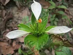 Mussaenda macrophylla, commonly known as sweet root is an evergreen Asian shrub. The bracts of the shrub may have different shades, including red, white or some mixtures.[1] M. macrophylla is native to Asian countries like China, Taiwan, Nepal, Myanmar, Malaysia, Philippines.[2]