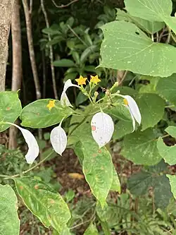 Mussaenda parviflora is a species of flowering plant in the family Rubiaceae, native to Yakushima and the Ryukyu Islands of Japan, Taiwan, and Guangdong, China.[1] A climbing shrub, it flowers March to May and fruits from August all the way to January.[2]