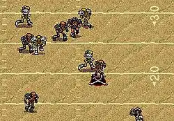 Teams are composed of aliens, skeletons, robots, trolls, and superhumans. Seven players are on the field for each team, instead of the usual eleven. Many of the teams are based on real life teams, with names like the Deathskin Razors and the Midway Monsters. Players also have humorous names, like Bones Jackson (Bo Jackson), L.T. Impaler (Lawrence Taylor), Joe Magician (Joe Montana) and Scary Ice (Jerry Rice). However, despite all of the death and destruction, the competition aspect is still high, and requires much strategy, especially compared to games like NFL Blitz.