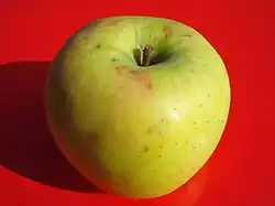 The Mutsu (陸奥, ムツ) apple (also known as Crispin) was introduced in 1949 and is a cross between the 'Golden Delicious' and the 'Indo' apple cultivars first grown in Aomori Prefecture, Japan. The apple's name is the former name of a large section of the Tōhoku region, Mutsu Province, which Aomori was created from during the Meiji Restoration.[1][2][3]