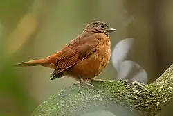 Myadestinae (the turdid solitaires) are a subfamily of passerine birds in the family Turdidae. Members of this group have been noted by ornithologists to be rather unusual in that they lack the typical diagnostic traits seen in the "true" thrushes of the sister subfamily Turdinae. Examples of including the lack syringeal morphology seen in turdines and the feeding ecology of myadestines being similar to those of Old World flycatchers. A 2005 molecular study from Klicka et al. found support in a basal clade consisting of the genera Sialia, Neocossyphus, Stizorhina, and Myadestes to be sister to the rest of the thrushes. The divergence between myadestines and turdines occurred 11 million years ago in the Serravallian.[1]