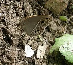 - Mycalesis mineus (Linnaeus, 1758) – dark-branded bushbrown[6]