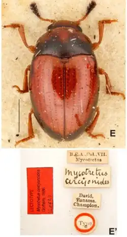 - ^ Pecci-Maddalena, Italo Salvatore de Castro; Lopes-Andrade, Cristiano; Skelley, Paul (2023-06-28). "Catalogue of Mycotretus Lacordaire, 1842 (Coleoptera: Erotylidae: Tritomini): an annotated, illustrated and historical approach". European Journal of Taxonomy. 876: 1–182. doi:10.5852/ejt.2023.876.2149. ISSN 2118-9773.