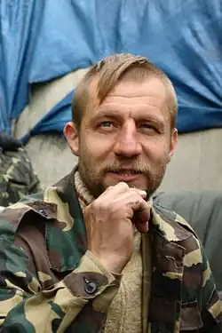 Mykhailo Vitaliiovych Havryliuk (Ukrainian: Миха́йло Віта́лійович Гаврилю́к; born 15 August 1979) is a Ukrainian public figure. He participated in the 2014 Euromaidan protests as a Cossack of the Fourth Maidan Self-Defense Hundred, and was publicly tortured by Berkut officers in January 2014.[2][3][4]