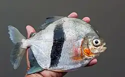 Myloplus schomburgkii, also known as the Disk tetra, Disk pacu, Black-ear pacu, Black-band myleus or Black-barred myleus is a species of serrasalmid with a black bar on its side. This species is found in the middle and lower Amazon River basin, Nanay River, upper Orinoco River basin in Brazil, Peru, Venezuela and possibly in Suriname.[2][3]