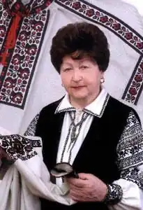 Myroslava Petrivna Kot (née Buha, 5 October 1933, Warsaw, Poland – 29 December 2014, Drohobych, Ukraine) was a Ukrainian embroiderer.[1][2] From 1991, she was the head of the Department of Methodology and History of Ukrainian Decorative and Applied Arts at the Teachers’ Training College in Drohobych.[3] She was awarded Master of Folk Crafts of Ukraine in 1995, and an Honorary Citizen of Drohobych in 2012.[4]