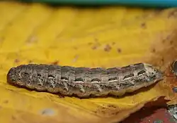 Larva dull reddish grey; dorsal line white, dark-edged; subdorsal line black, edged beneath with white and then a dark shade; spiracles black on a paler stripe. The larva feeds on various grasses.[3] The species survives winter as a caterpillar.
