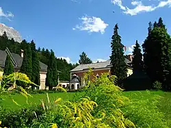 Wasserleonburg Castle, located high above the village of Saak, was rebuilt in the 14th century. During a series of ownership of several Villach merchant families, it was significantly enlarged in the 16th and 17th centuries, including a Renaissance courtyard with an open loggia, a Mannerist facade, and a castle chapel. Up to today, the complex is privately owned and used as a hotel; after his abdication, Edward VIII, Duke of Windsor, and his wife Wallis Simpson spent their honeymoon here from 5 June to 7 September 1937.