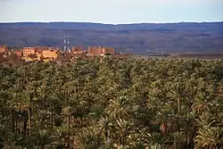 N'Kob (Berber languages: ⵏⵏⵇⵇⵓⴱ [nnqqub], Arabic: نقوب, also spelled as Nkob) is a rural municipality in the Zagora province, in the Atlas Mountains. It is located near the Jbel Saghro and 24 kilometers from Tamsahelte. N'Kob is situated 35 kilometers west of the commune of Tazzarine and 40 kilometers from the intersection with the Draa Valley (Tansikht), the most spectacular stretch of the N9. The village has 45 Kasbahs and is surrounded by two oases full of palm trees, numerous of these ancient kasbahs have now been renovated and became hotels. The most widely spoken language in this region is Shilha (Tamazight). According to results of the 2014 general census of the population and households, the village has a population of about 7,209 people.[1]