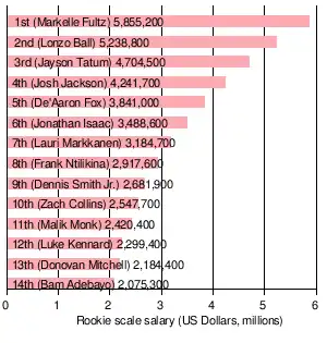 Prior to the 2017 CBA, the rookie scales for each season were negotiated into the agreement. For the current agreement, only the rookie scales for the 2017–18 season were determined in advance. In subsequent seasons, the percentage change in the salary cap will be applied to all dollar amounts in the previous season's scale. Amounts that are expressed as a percentage of salary, such as the allowable salary change from the third to the fourth season of the rookie contract, remain the same from season to season.[38]