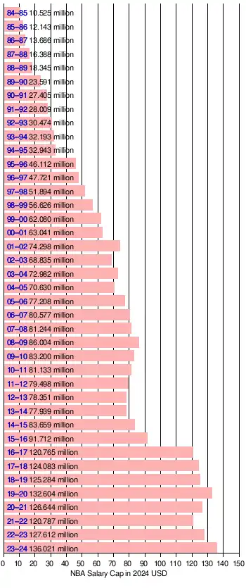 13. ^ "NBA Salary Cap History - Basketball-Reference.com". Basketball-Reference.com. Retrieved 3 January 2025.