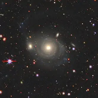 - ^ a b c The quick-look major axis physical diameters given by NED of 10.01 by 9.41 kiloparsecs (32,600 by 30,700 light-years) and 10.19 by 7.95 kiloparsecs (33,200 by 25,900 light-years) were based on a distance estimate of 21.5 megaparsecs (70.12 million light-years). The quoted diameters in this infobox were based on NED's provided scale "Virgo + GA + Shapley" of 317 parsecs/arcsec multiplied with given angular diameters.