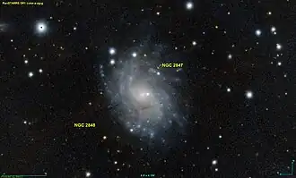 NGC 2848 is an intermediate spiral galaxy in the constellation of Hydra. Its velocity with respect to the cosmic microwave background is 2,361 ± 23 km/s, which corresponds to a Hubble distance of 34.82 ± 2.46 Mpc (~114 million light-years).[1] It was discovered by German-British astronomer William Herschel on 31 December 1785.[2]