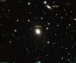 NGC 393 is a lenticular galaxy located in the constellation Andromeda. It was discovered on October 5, 1784, by William Herschel. It was described by Dreyer as "faint, very small, very little extended, gradually brighter middle, four small (faint) stars near."[2]