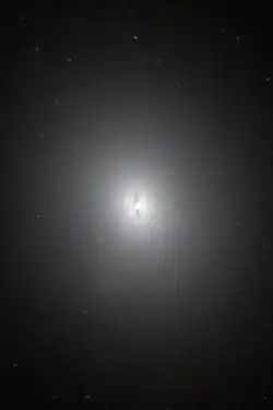 NGC 6251 is an active supergiant elliptical radio galaxy in the constellation Ursa Minor, and is more than 340 million light-years away from Earth. The galaxy has a Seyfert 2 active galactic nucleus,[3] and is one of the most extreme examples of a Seyfert galaxy. This galaxy may be associated with gamma-ray source 3EG J1621+8203, which has high-energy gamma-ray emission.[3] It is also noted for its one-sided radio jet—one of the brightest known—discovered in 1977.[4] The supermassive black hole at the core has a mass of (5.9±2.0)×108 M☉.[5]
