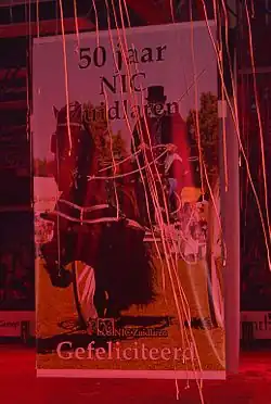 In year 2004 NIC Zuidlaren took place for the fiftieth time in history. It all happened in the Prins Bernhardhoeve exhibition complex in Zuidlaren. The event took 5 days and 36.000 visitors came to see the show. The fiftieth edition was special, because of the jubilee celebration. Queen Beatrix of the Netherlands accompanied the event, there were special shows and Mr. W. Roelfsema quit his NIC Zuidlaren presidency.