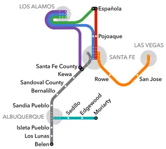 Currently, Park and Ride operates six routes in its northern network,[4] two routes on its southern network,[5] and two local routes in Santa Fe to connect passengers to the Rail Runner.[6]