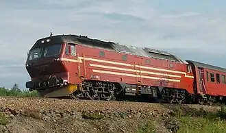 NSB Di 4 is a class of five diesel-electric locomotives built by Henschel for the Norwegian State Railways (NSB). Delivered in 1981, the class is used to haul passenger trains on the Nordland Line and are since 2001 the only revenue diesel locomotives used by NSB. The locomotives had electric components from Brown, Boveri & Cie and a General Motors Electro-Motive Division 16-645E prime mover. This gives a power output of 2,450 kilowatts (3,290 hp) and a starting tractive effort of 360 kilonewtons (81,000 lbf).