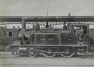 In 1899, the NCS bought a tank engine from the Sächsische Machinenfabrik in Chemnitz for use on the local railway lines.[1] Inspiration was taken from the 2.311 to 2.380 series of the French Compagnie des chemins de fer du Nord.[2] After the locomotive entered service and proven itself with the NCS, a follow-up order was placed for four more locomotives, which were put into service in 1901 as 42–45. No. 41 was delivered in the original green NCS livery, but Nos. 42-45 were painted in the new ocher yellow livery introduced in 1901 with olive green bands with white and red piping.[2] In 1901 all five locomotives 41-45 were sold to the Nederlandsche Buurtspoorweg-Maatschappij (NBM).