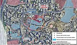 Nahalat Shimon was located at the tip of the Kidron Valley, west of the tomb of Simeon the Just. The namesake Jewish settler organization contends that the land was purchased in 1890 and the first homes were built soon after, housing 20 impoverished families, and that by 1947 there were 100 Jewish homes in the neighborhood. In March 1948, due to mounting Arab violence during the 1948 Arab–Israeli War, the British ordered the residents to evacuate within two hours.[3][6] According to one of the evacuees, Justice Emeritus Michael Ben-Yair, all these Jewish evacuees from Sheikh Jarrah were given Palestinian homes in West Jerusalem in compensation.[7][1] Meanwhile, the Palestinians who were given housing in the Sheikh Jarrah neighborhood by Jordanian authorities in exchange for in a relinquishing their refugee documents and accompanying rights have no right under Israeli law to repossess their pre-1948 homes in Haifa, Sarafand and Jaffa.[8] The settler organization Nahalat Shimon, registered in Delaware, has pursued the case in Israeli courts for decades, demanding eviction of the Palestinian residents so that Jewish settlers can be housed there.[9]