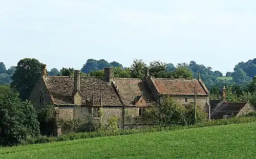 Naish Priory in East Coker, Somerset, England, contains portions of a substantial house dating from the mid-14th century to around 1400. Emery says the building was not a priory as it had been termed by the late-19th-century owner Troyte Chafyn Grove, and there appears no evidence of ownership by a religious house or the residence of a large community of monks on the site.[2] However, there is evidence of a dormitory and communal living dating from the 14th century, and the extant buildings grew on a foundation that had religious obligations by way of chantry to the de Courtenay Earls of Devon from at least 1344. It has been designated as a Grade I listed building, with the attached Priory Cottage and northern boundary railings.[1]
