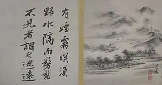 Nakabayashi Chikutō, originally Nariaki (Japanese:中林 竹洞; (1776, Nagoya - 27 April 1853, Kyoto) was a Japanese painter in the nanga style. His other art names include Chūtan (沖澹), Taigen’an (太原庵) and Tōzan Inshi (東山隠士).
