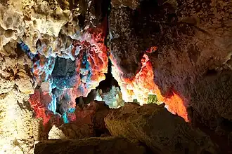 It is a limestone cave approximately 70 million years old. Parts of the cave, including its internal lake, have been prepared for easy tourist access. It was discovered in 1989 and registered as a national monument in 2001. Its interior is made of crystals, dolomite sediments, stalactites and stalagmites.[2][3]