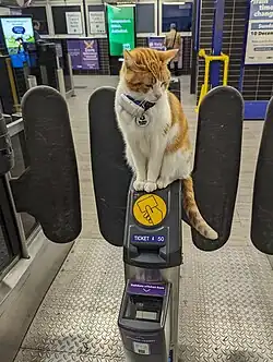![]() Nala the cat sitting on a ticket barrier | |